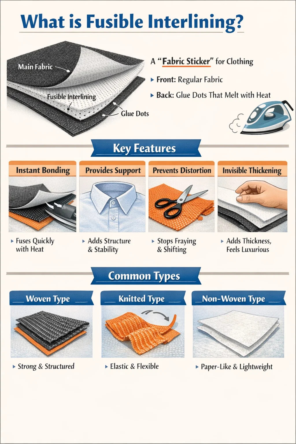 Smeltbare tussenvoering is een speciaal soort hulpstof met "lijm" aan de achterkant. Het is een veelgebruikt materiaal bij het maken van moderne kleding, waardoor de kledingproductie eenvoudiger en efficiënter wordt.